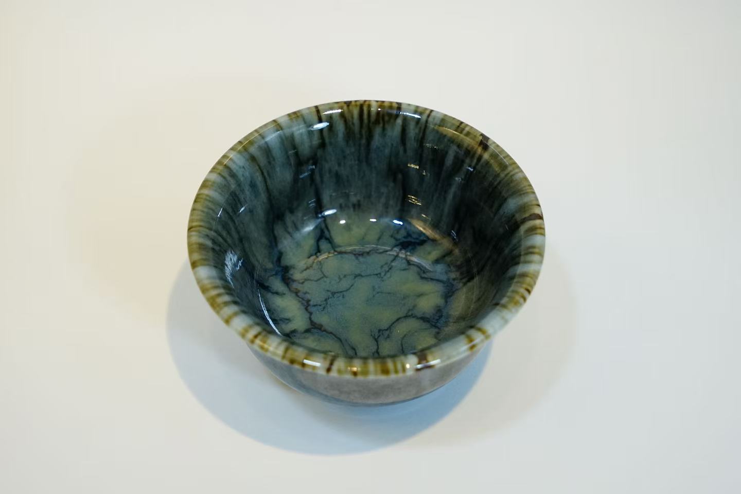 This is a high-temperature raw ore glaze tea set fired at 1,350 degrees, made from copper, iron, natural ore, and premium gaobai clay. The materials are safe for daily use. It’s handcrafted by Chen Jinrong, a Master of the Intangible Cultural Heritage from Jingdezhen. Because the glaze color changes cannot be controlled during the firing process, very few perfect pieces are produced. That’s why each cup is unique, highly precious, and of great value to collectors. It is similar to the “Tianmu” tea bowls from the Song Dynasty—they enter the kiln appearing one color but emerge with countless unique hues.BT2510090001资质 (6)