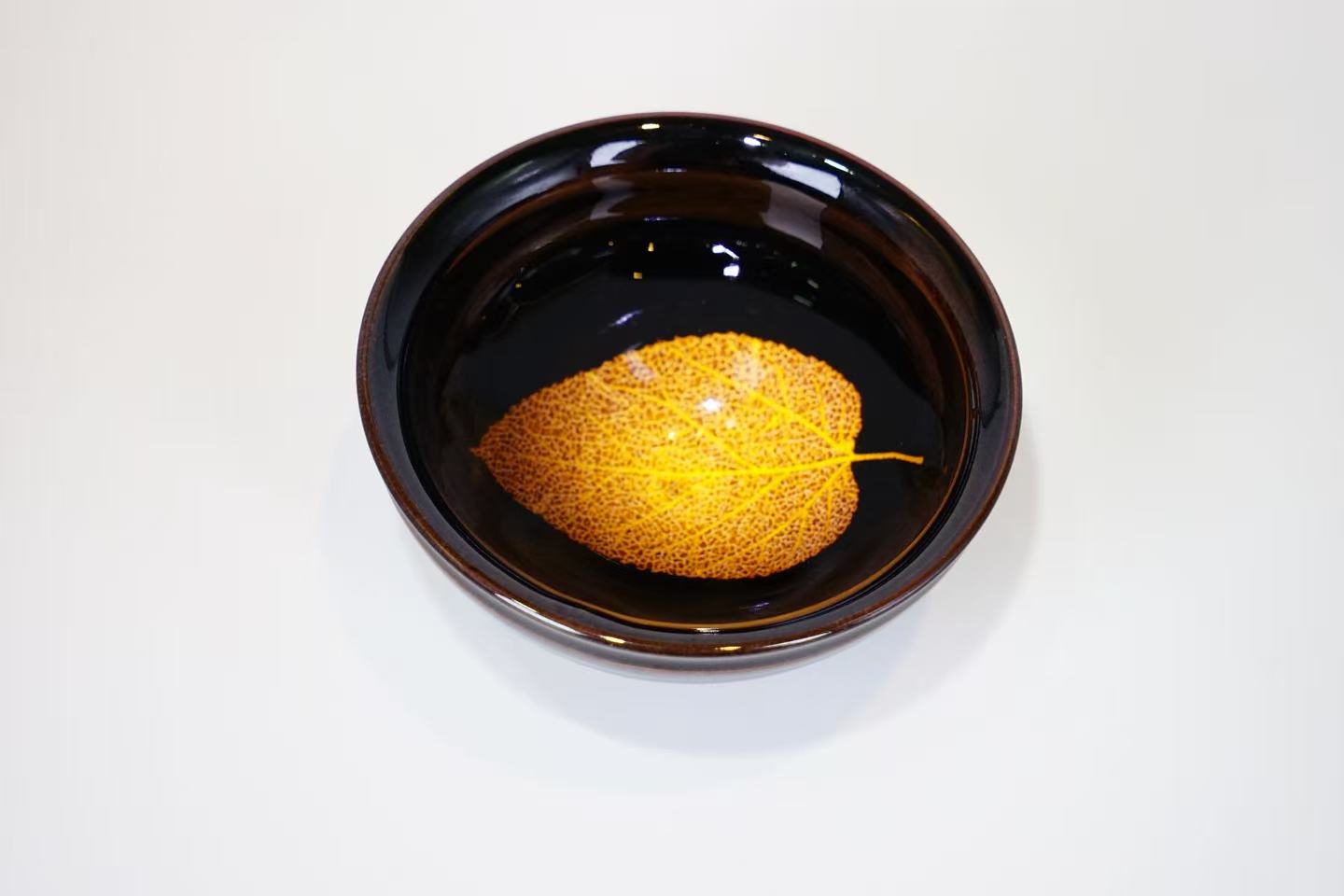 Leaf-Patterned Tenmoku Glaze was exported overseas during the Song and Yuan dynasties. In the 1980s, the long-lost ancient techniques for producing it were successfully reproduced, and it has now been listed as a National Intangible Cultural Heritage.